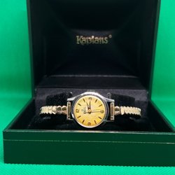 En vintage Olma damklocka med 17 jewels incabloc urverk. Klockan har en guldfärgad boett och armband.