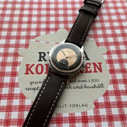 Klockan går. Dåligt glas. Orginal krona. 33.5mm. Se bilder för egen bedömning.