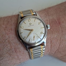 Klassisk vintageklocka från Certina med stilren tvåtonsurtavla och liten sekundvisare. Mekaniskt urverk (15 jewels, Swiss Made).