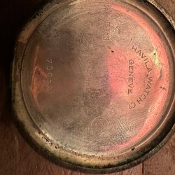 Omega armbandsur med en boett i stål och en svart läderrem. Urtavlan är guldfärgad med arabiska siffror och har en subsekundvisare. Klockan har ett manuellt uppdraget urverk.Har ej testat .