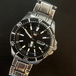 Säljer en Seiko automatisk klocka. Klockan har en svart urtavla och en vridbar bezel. Den kommer med ett metallarmband och extra gummiband. Inkluderar även en Seiko-box och extra länkbitar. Seiko 4R36-07G0. Repor på glaset mellan kl 5&6. Fungerar bra .