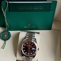 Rolex Datejust med automatisk urverk. Klockan kommer med tillbehör som syns på bilderna.
