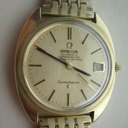 Omega fatlug med jämnpatinerad tavla.