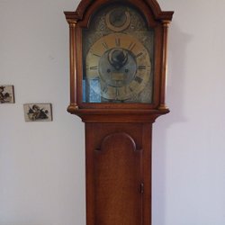 Ett mycket vackert golvur med intarsia. Uret har en dekorativ urtavla och ett pendelverk.