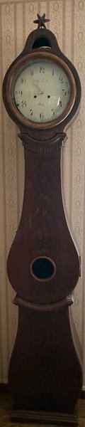 Ett golvur. Perfekt för den som söker en unik inredningsdetalj. Höjd 2,25m bredd 41 cm djup 18 cm. Det sitter ett mekaniskt urverk i.