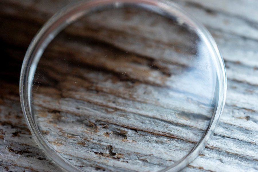 Glasen är begagnade och har tidigare varit monterade på en vintage Omega-klocka. Det förekommer därför repor och bruksspår. Samtliga glas är noggrant kontrollerade för att säkerställa att eventuella repor inte är för djupa och bedöms kunna poleras bort vid behov.