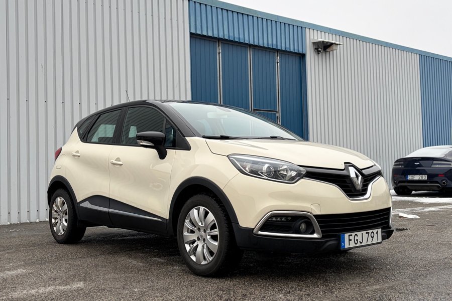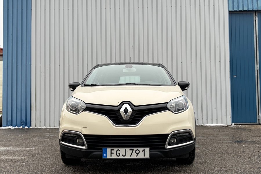 Vi presenterar en Renault Captur från modellår 2014, en första generationens SUV som erbjuder en dynamisk körupplevelse. Under huven finns en effektiv 0.9 TCe bensinmotor som levererar 90 hästkrafter. Denna Captur har en flerfärgad exteriör, vilket ger den en unik karaktär.