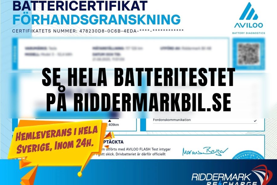 Jämför denna bil med någon av våra andra Tesla Model 3 i lager. Se våra bilar på https://www.riddermarkbil.se/kopa-bil/?series=model%203