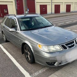 9-5 Aero fälgar med dåliga däck sitter på bilen.