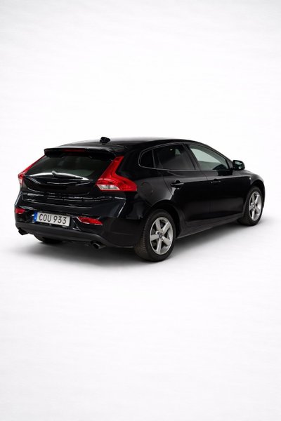 Denna Volvo V40 T4 från 2015 är en halvkombi med en bensinmotor som levererar 180 hästkrafter. Bilen är utrustad med Momentum-paketet, vilket inkluderar funktioner som City Safety 2, Clean Zone, High Performance Sound System och Intelligent Driver Information System. Den kommer i en elegant svart färg.