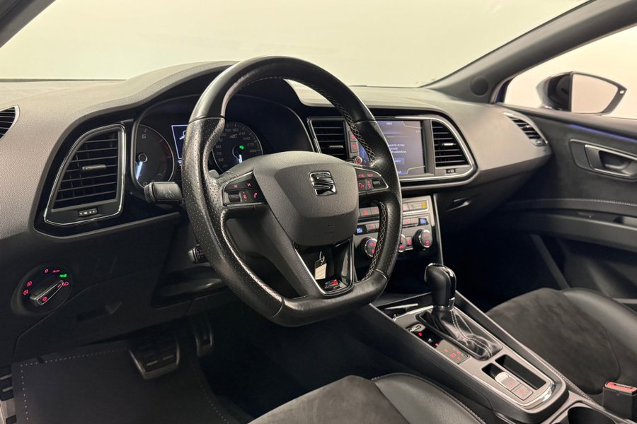 Svensksåld Seat Leon Cupra ST 300HK 4-Drive - 4WD, PDC fram/bak inkl. 360g kamera, 19'' fälgar, Svart läder/alcantara inredning, Svart optik paket med tonade rutor, LED strålkastare, Fullservad. Passa på att förvärva en snygg samt Cupra ST! Bilen är i fint skick!