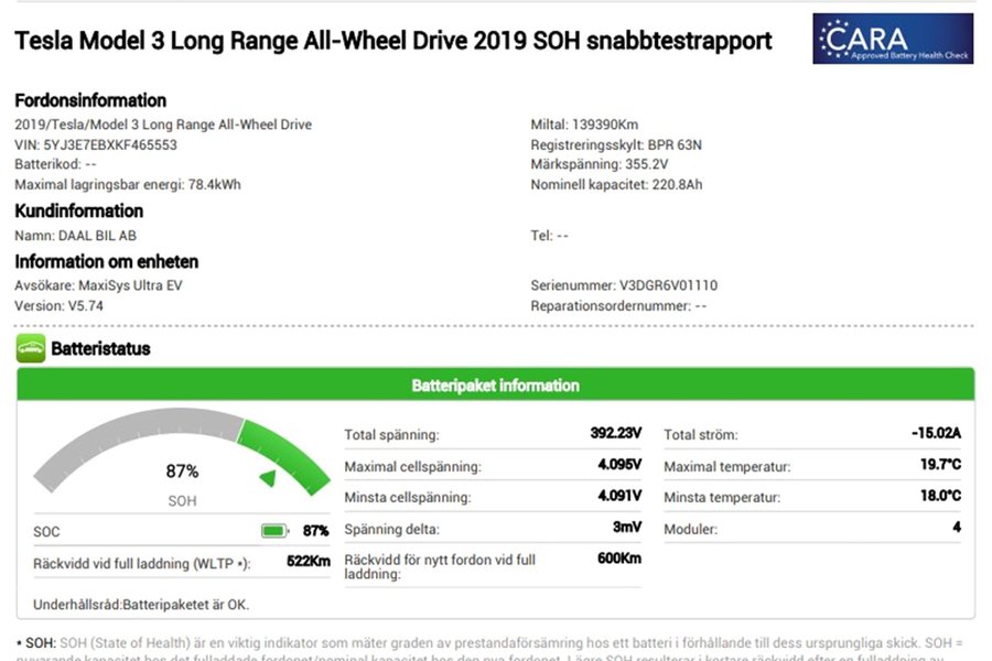 * Batteritest på samtliga elbilar