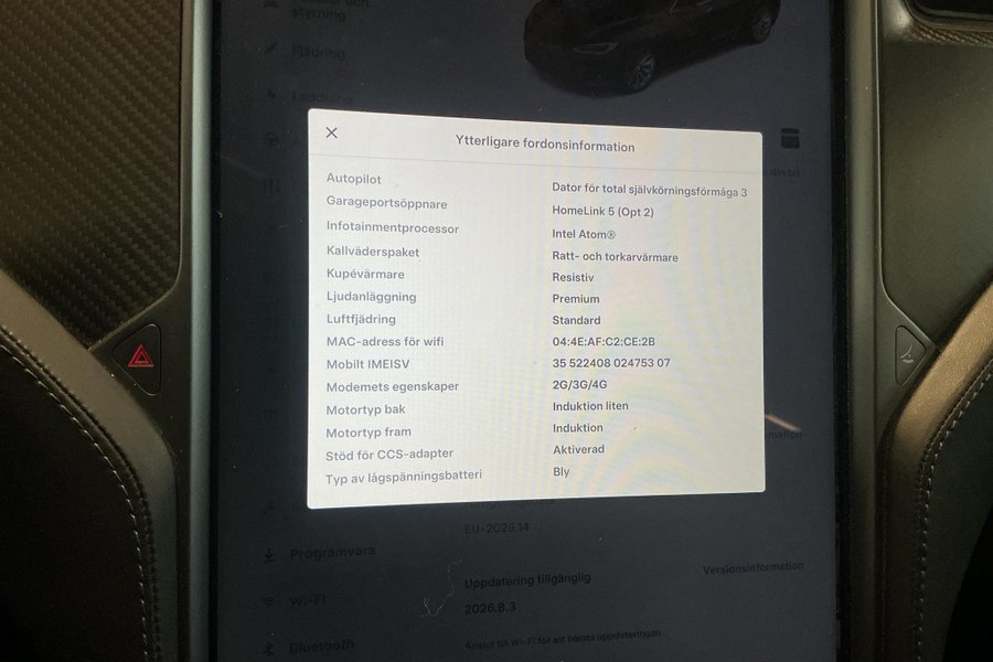 Här presenterar vi en fyrhjulsdriven Tesla Model S 75D med en generös utrustningsnivå och en modern, bekväm känsla. Bilen har bland annat panoramatak, backkamera, adaptiv farthållare och helläder som höjer helhetsintrycket. Besiktigad till mars 2027. Objektet säljs av Kvdbil (kvd) på auktion med avslut 2026-04-17.