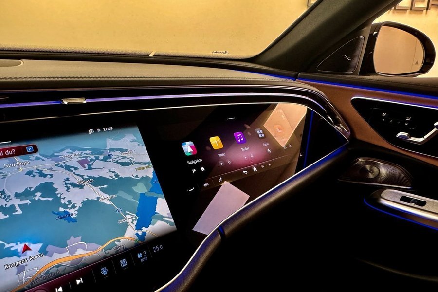 Svensksåld samt full specad Mercedes-Benz E200 204HK, Gällande nybilsgaranti 2 år, Alpine grå utvändigt med helläder i kastanj-brun, Panorama glastak, Dubbla skärmar fram, 20'' AMG fälgar, AMG night package, Burmester surround paket, HEAD-UP display, Ambient belysningspaket. Passa på att förvärva en full specad E200 AMG! Bilen är i nyskick.
