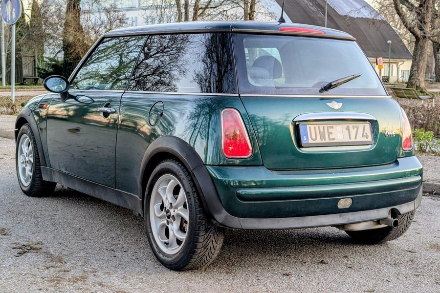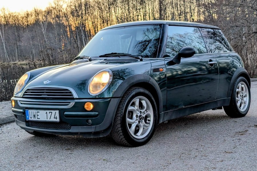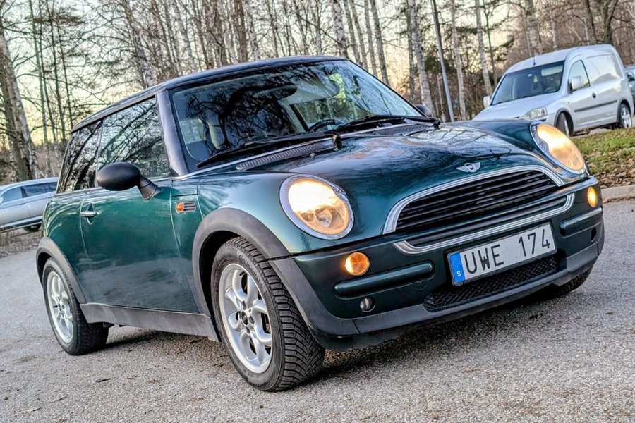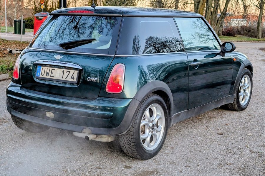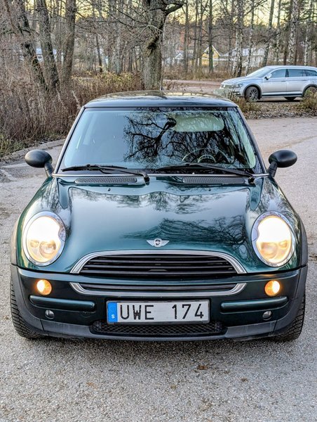 Denna MINI Cooper One från 2004 är en halvkombi med en 1.6 W10B16 (66 kW) bensinmotor som levererar 90 hästkrafter. Den kommer i en grön exteriör och är utrustad med Salt-paketet.