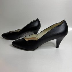 Ett par eleganta, långa handskar i svart färg. Handskarna har en öppning vid handleden som stängs med två knappar.