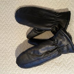 Ett par svarta tumvantar med foder. SKINN