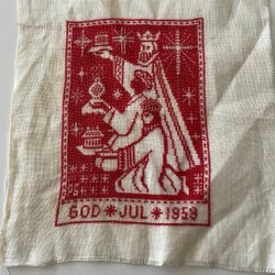 Vintervita handstickade o tovade vantar/tumvantar m hjärta/handstickade ullvante