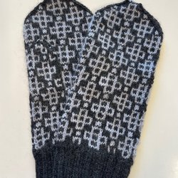Ett par handstickade vantar i rött och vitt mönster. Vantarna har ett traditionellt skandinaviskt mönster och är perfekta för att hålla händerna varma under kalla dagar. De är handgjorda med omsorg och har en hög kvalitet. Stickade i 100% ullgarn