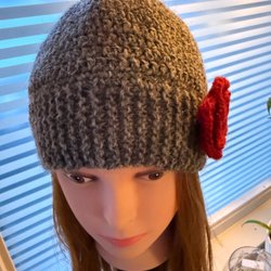 Ett par handgjorda gråa vantar med broderade detaljer i rött och orange. Vantarna har ett dekorativt mönster med stiliserade blommor och blad. Vantarna är stickade, tovade och broderade på fri hand. De kan tvättas i maskin på ulltvätt, formas på din hand, därefter plantorkas .