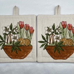 Vantar i naturvitt, stl M, handstickade, 100% ull
