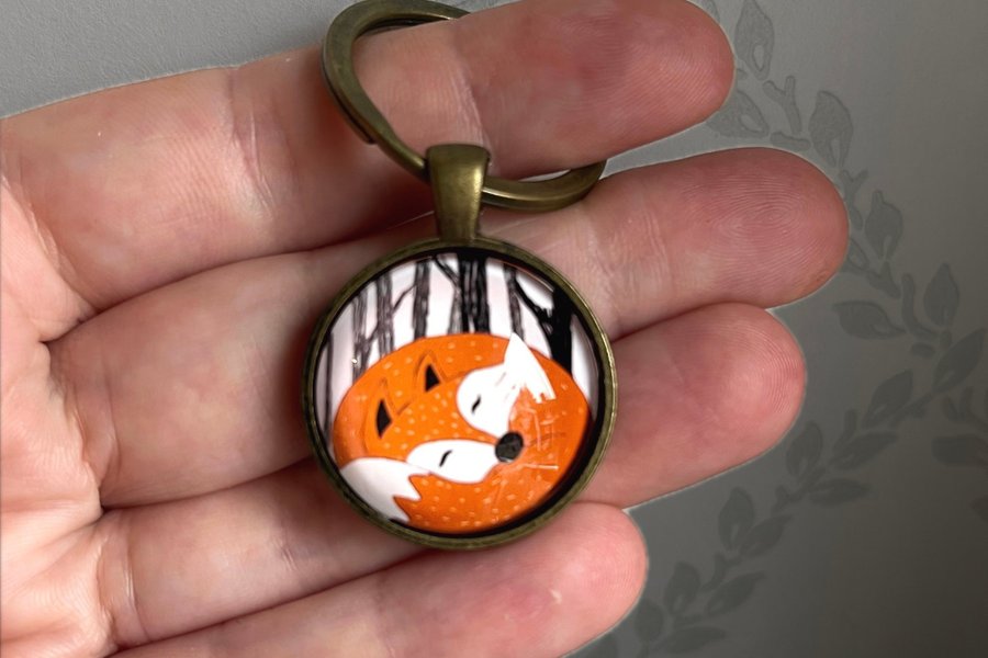 Sätt lite extra charm på dina nycklar, väskor eller ryggsäckar med denna underbara nyckelring med motiv av en sovande räv. Perfekt för dig som älskar natur, djurmotiv eller bara vill ha en söt detalj i vardagen! :)