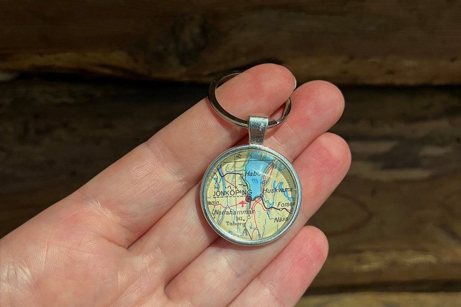 Nyckelring i silver med kartmotiv – Jönköping