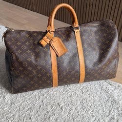 Louis Vuitton Keepall 55 med lås & nametag