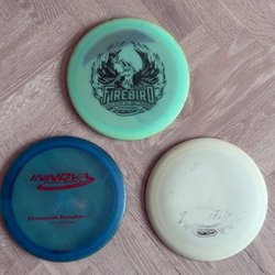 Här är ett gäng disc golf discar av olika modeller och märken som Innova och Discmania. Inkluderar modeller som Valkyrie, Leopard, Hawkeye, Fuse, Instinct och CD1 discraft dna samt en järva open 2024. Perfekt för både nybörjare och erfarna spelare.