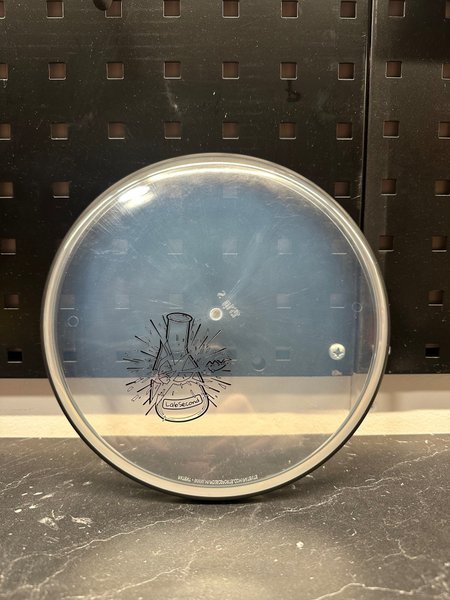 MVP Disc Golf LabSecond Fission Photon. Discen är transparent med en svart LabSecond-stämpel.
