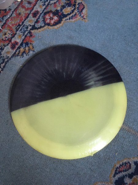 Frisbee golf disc i svart och gul färg.