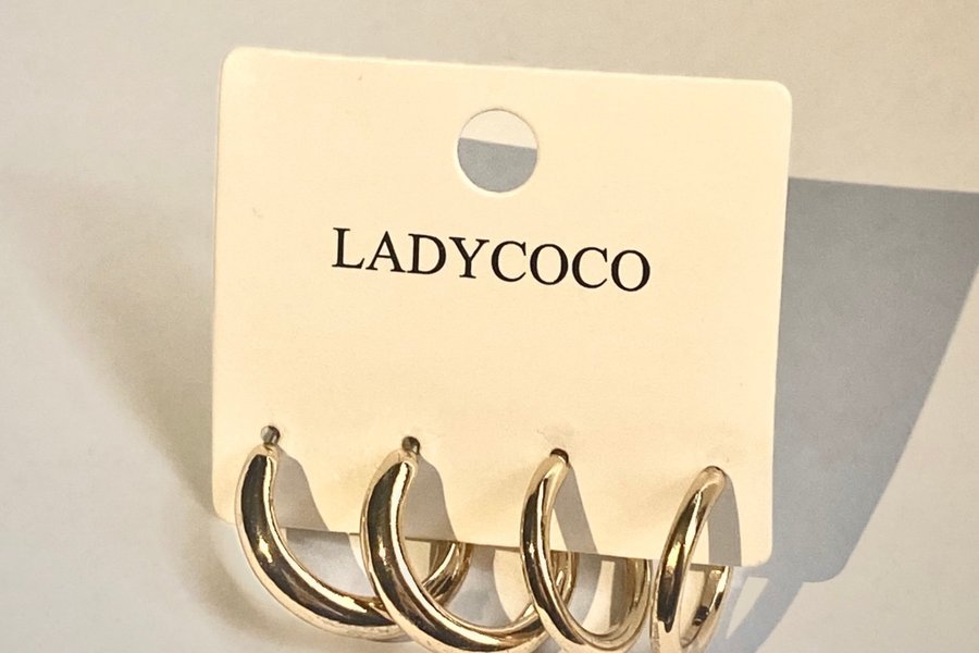 Ett set med två par guldiga örhängen från LADYCOCO. Perfekt för att variera din stil.