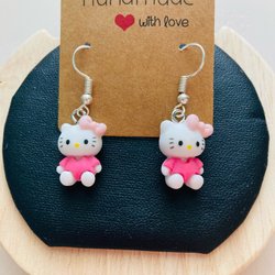 Ett par örhängen med rosa hängen och ett silverfärgat mönster.