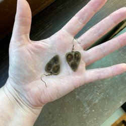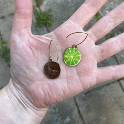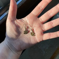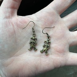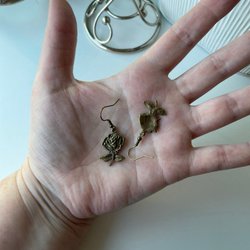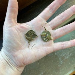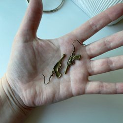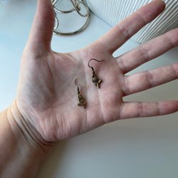 Bronspläterad metall i både berlocker och örkrokar.
