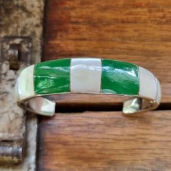 Långa örhängen i vitmetall med grön dekor