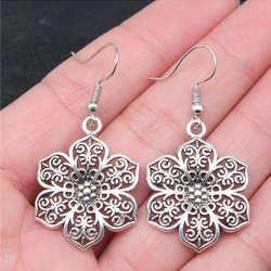 Söta blomma guld örhängen vintage antik stil tibet silver rosor blommor ros