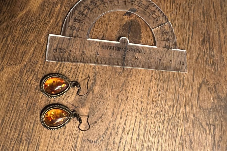 Örhängen med bärnsten. Samfraktar gärna! Säljer både äkta och oäkta smycken.
