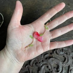 Ett par körsbärsformade örhängen med guldfärgade detaljer.