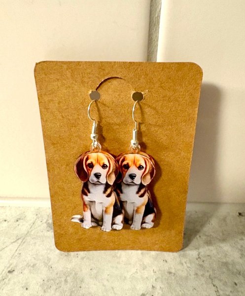 Jättesöta Beagle akryl örhängen. Totala längd 60mm.