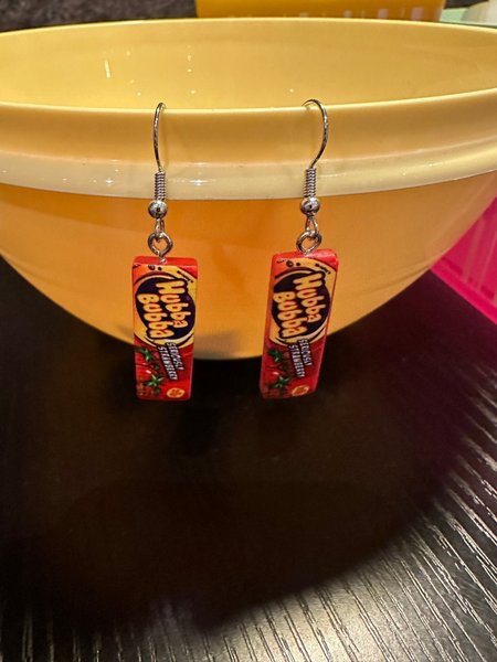 Ett par örhängen med Hubba Bubba.