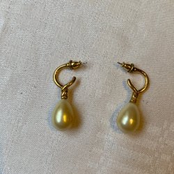 Ett par stilrena örhängen i guldton med en vacker pärla i mitten. Perfekt för både vardag och fest.