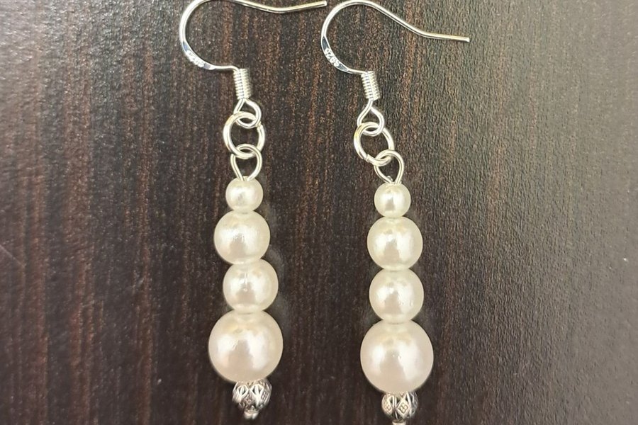 Eleganta pärlörhängen med silverfärgade detaljer. Perfekt för både vardag och fest.