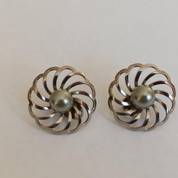 Ett par örhängen med clip-on fäste. Triangelformade med turkos, svart och guldfärgad emalj. Vintage .