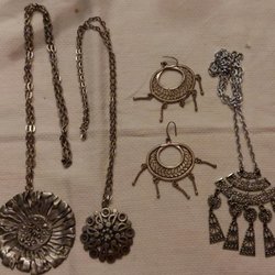 Ett set med olika örhängen. Inkluderar pärlörhängen, örhängen med dalahästar, bladformade örhängen och andra unika designer.