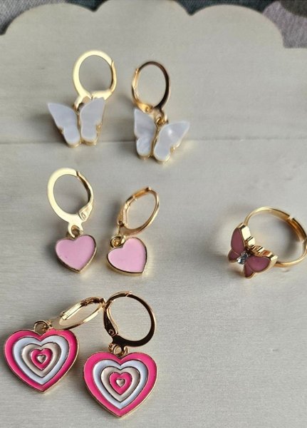 Tre par örhängen och en ring passar barn. Nytt. Ansvarar inte för postens slarv kan samfrakta flera produkter spårbart för 47kr