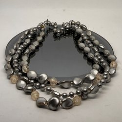 Elegant halsband med silverfärgade detaljer och vackra pärlor. Justerbar längd för perfekt passform.