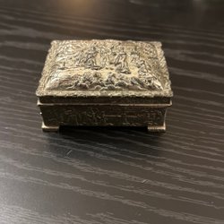 Superfint nyproducerat smyckeskrin i vackert tyg. Design: Utopia.  Längd 30 cm, djup 22 cm. Pris i tidigare butik 395:-. Nu 225.-