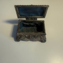 Superfint nyproducerat smyckeskrin i vackert tyg. Design: Utopia. Längd 30 cm, djup 22 cm. Pris i tidigare butik 495:-. Nu 325.-