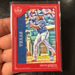 Ett parti med baseballkort med olika spelare och lag. Korten är förpackade i plastfickor.