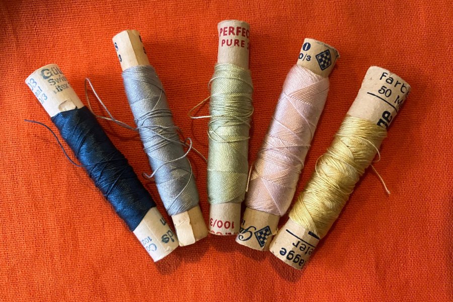 Enl bilder. Någon står det Gütermann på. Det står 100/3 på alla. Det är taget på alla.